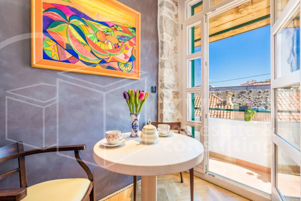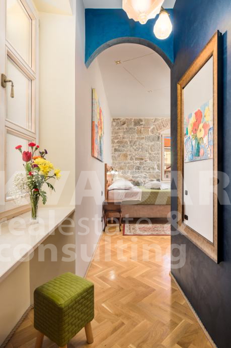 The total living area of ​​80m2 consists of 3 double bedrooms, each with its own bathroom and kitchen. The interior has been restored in an exceptionally high-quality manner, using autochthonous materials - stone and wood, respecting the strict rules of the conservator. The apartment is equipped with furniture and all the necessary devices: Android TVs, mini bar, air conditioning and Wi-Fi. in a way that combines traditional and modern style. One of the rooms has access to a balcony with a beautiful view of the old town surroundings.