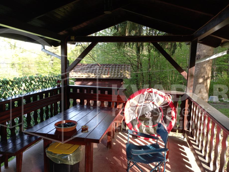Na zemljištu se trenutno nalazi drvena montažna kućica s pripadajućom natkrivenom terasom i pomoćnim objektom, koja se po potrebi može premjestiti ili prilagoditi prema željama budućeg vlasnika. Uz parcelu se nalazi betonirana površina s četiri parkirna mjesta, a priključci za vodu, struju i plin su osigurani. Uz parcelu prolazi telefonska linija s mogućnošću ADSL interneta.