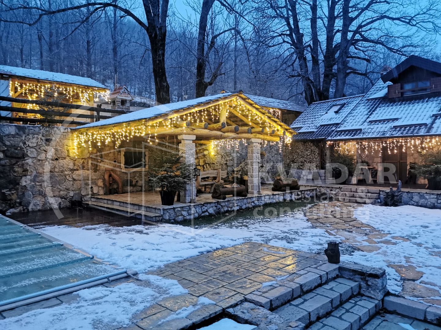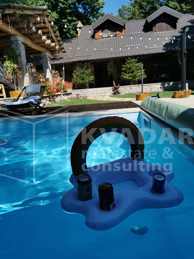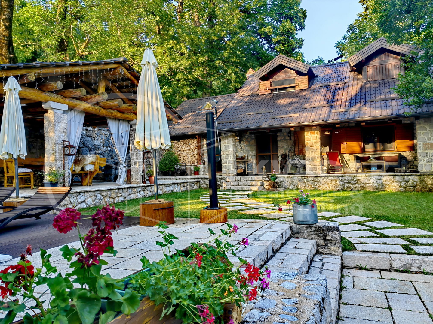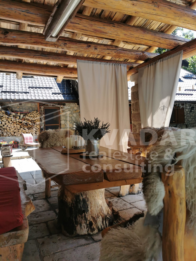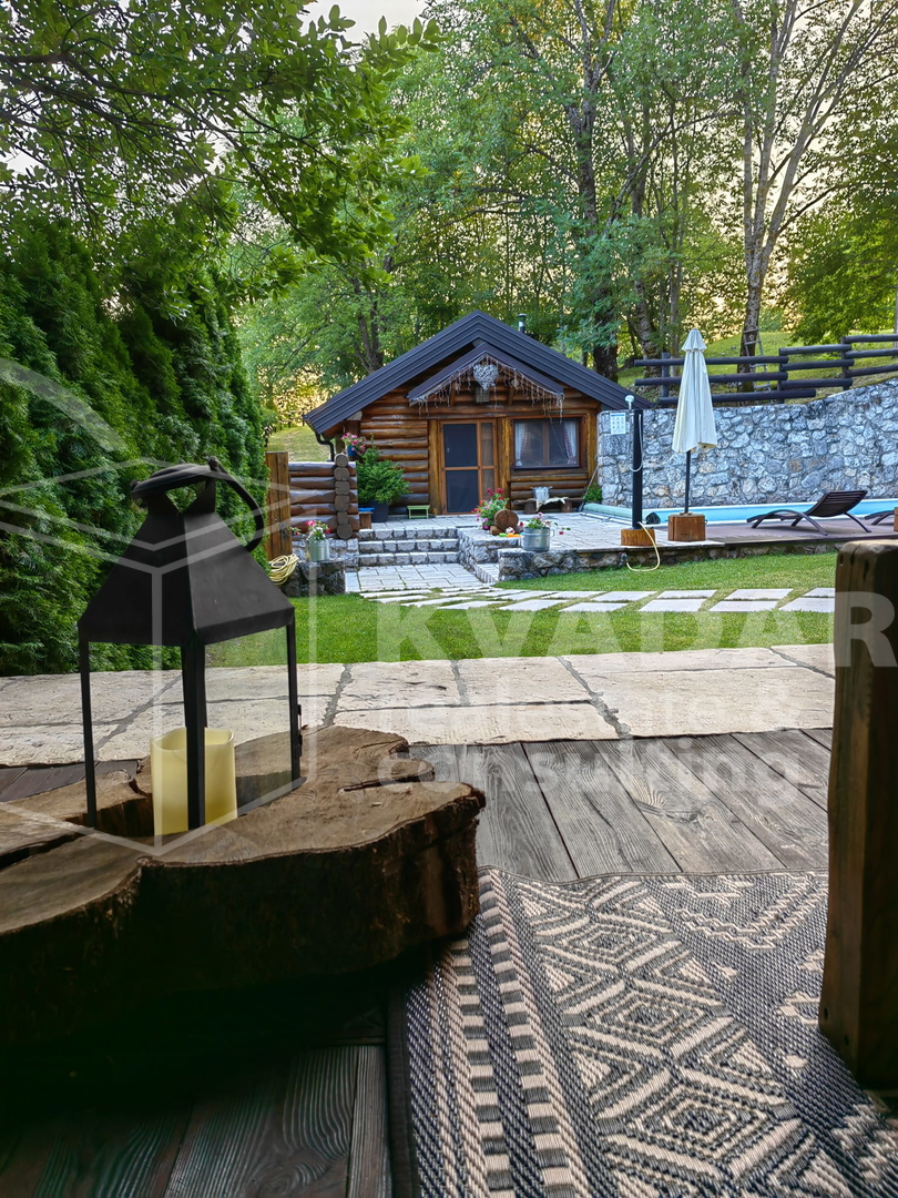 In the garden of the house there is a sunbathing area around the pool and a minigolf course. Each house has been carefully decorated to reflect the soul of this Lika region. All furniture and interior are made of oak wood, and the highest quality equipment has been used. The interior of the rooms is enriched with handmade details, which gives the entire space additional value and authenticity. For a complete experience of connection with nature, the property also includes a fenced plot with two wells, with a total area of ​​approx. 170,000 m2, inhabited by deer
