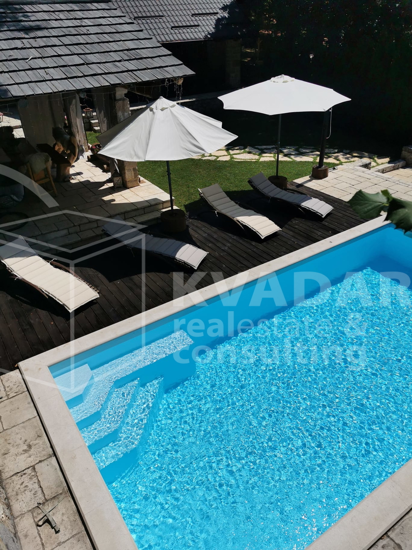 ♣ Vanjskog bazena (s ugrađenim grijanjem i bazenskom opremom) U vrtu kuće nalazi se sunčalište oko bazena i teren za minigolf.