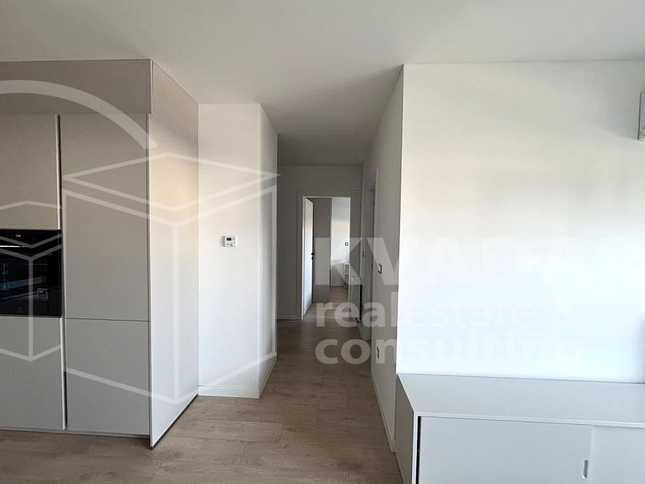 Na 7. katu (od ukupno 7) stambene zgrade s liftom nalazi se svijetao i prozračan trosobni stan s 55,67 m2 stambenog prostora, idealan za život ili najam. Raspored prostorija izuzetno je praktičan: ulazni hodnik, dnevni boravak s kuhinjom i izlazom na terasu od 9,25 m2 (dijelom natkrivenu), dvije spavaće sobe te kupaonica.