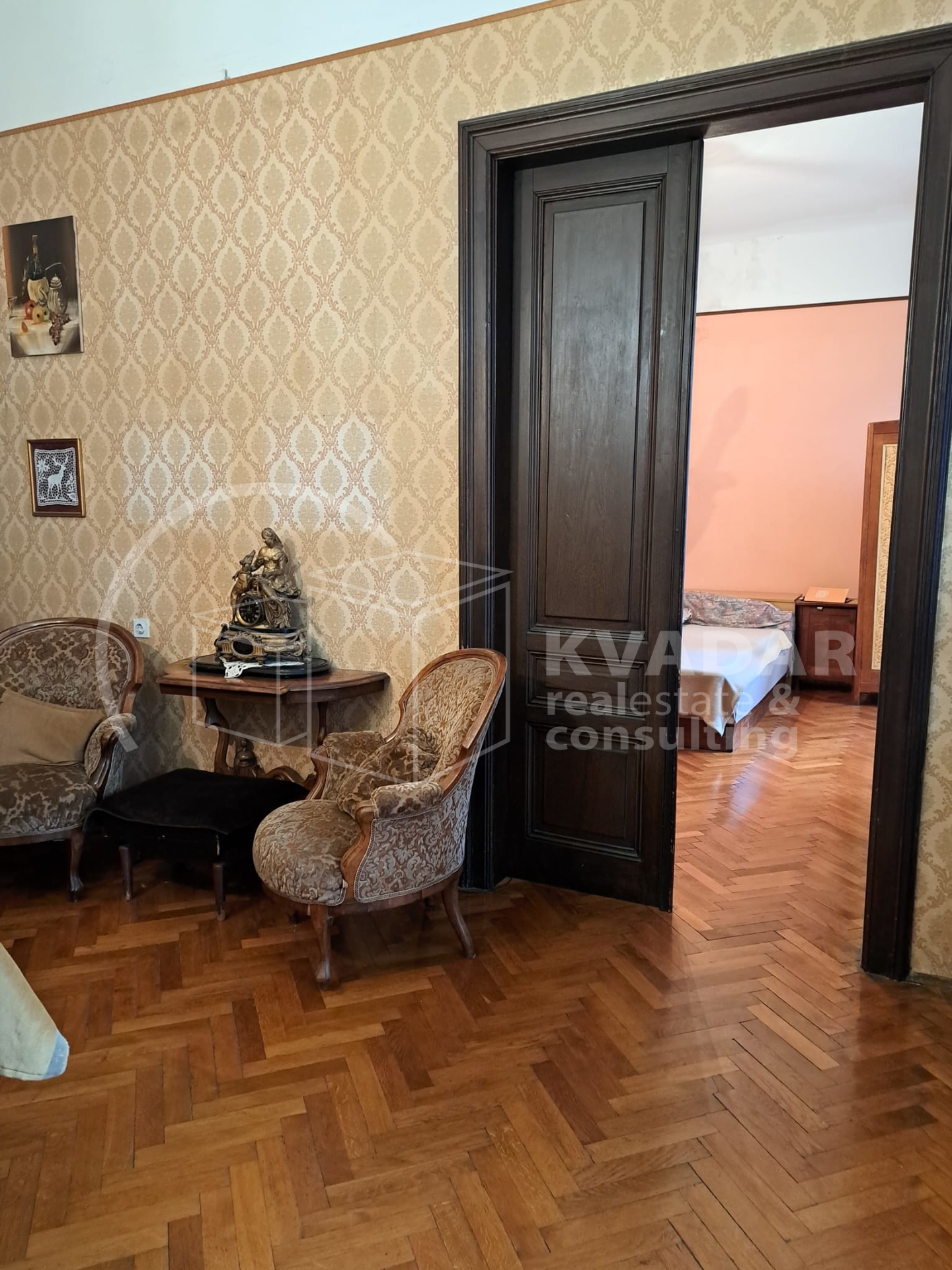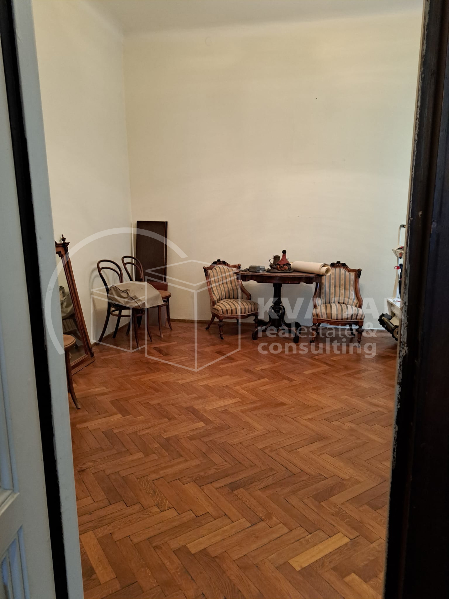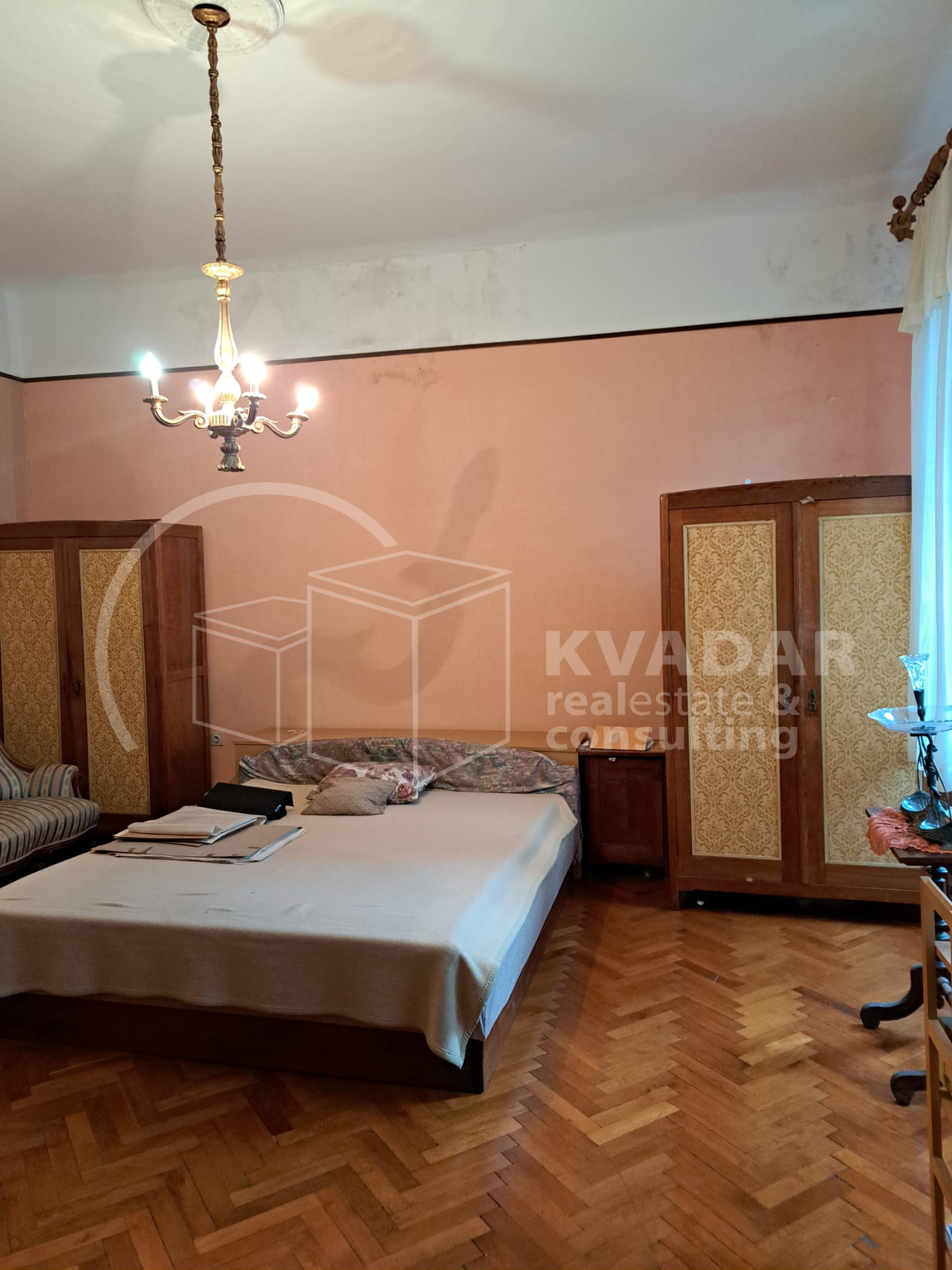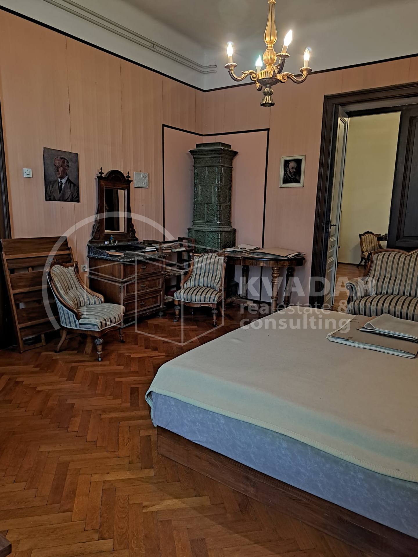 Prostor odlikuju visoki stropovi, skladne proporcije i autentični povijesni detalji, a pažljivo očuvani antikni namještaj, koji po dogovoru može ostati, dodatno naglašava karakter i bezvremensku eleganciju interijera.