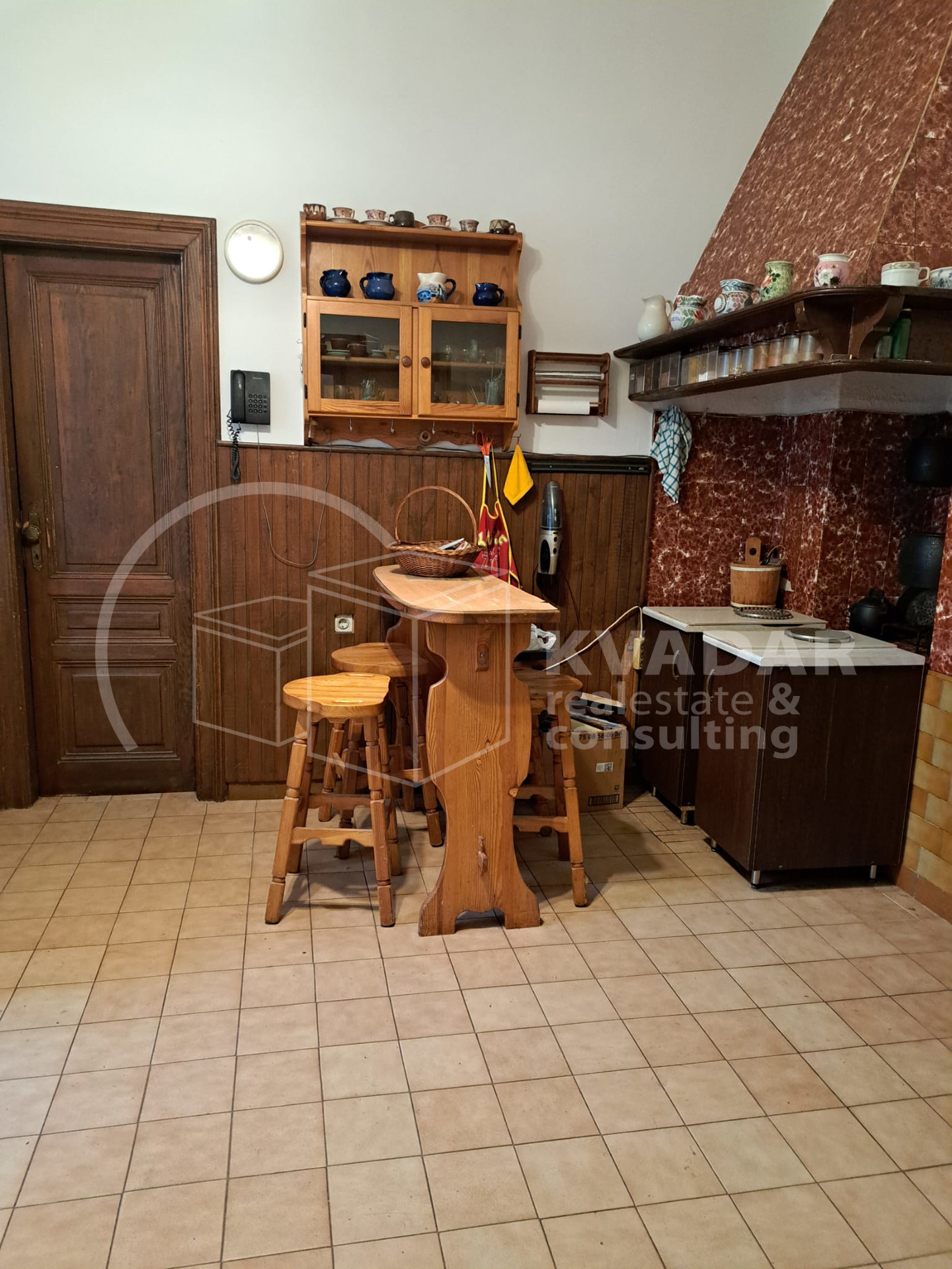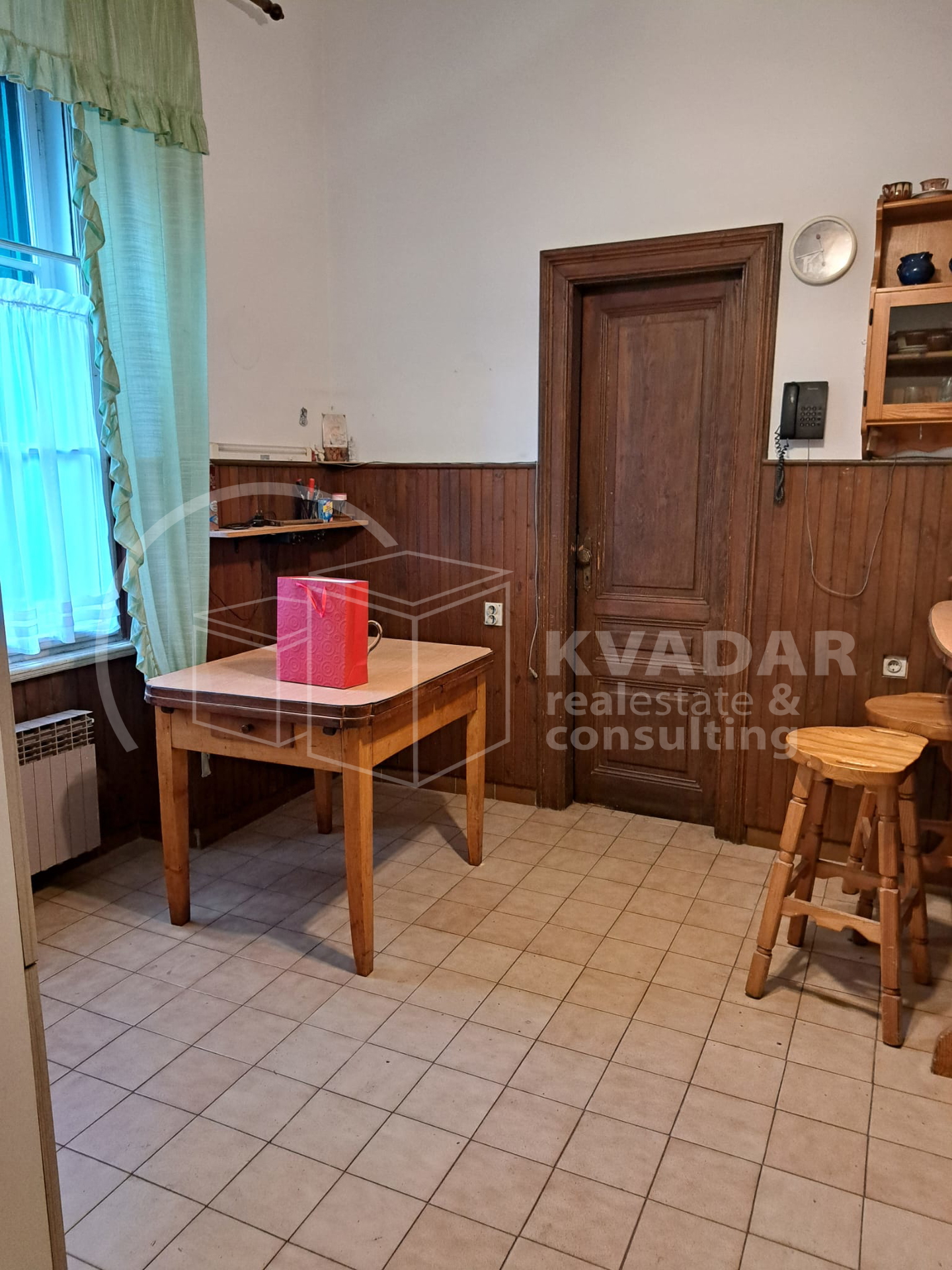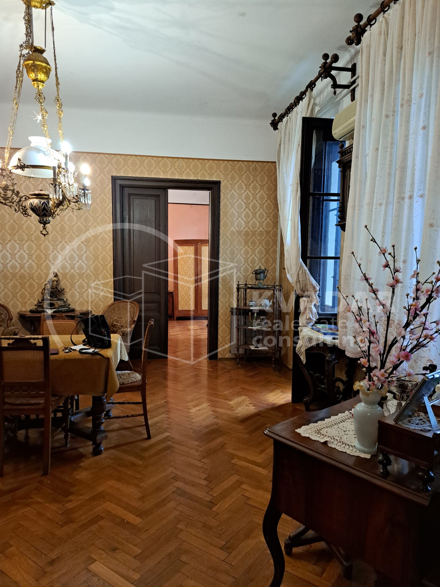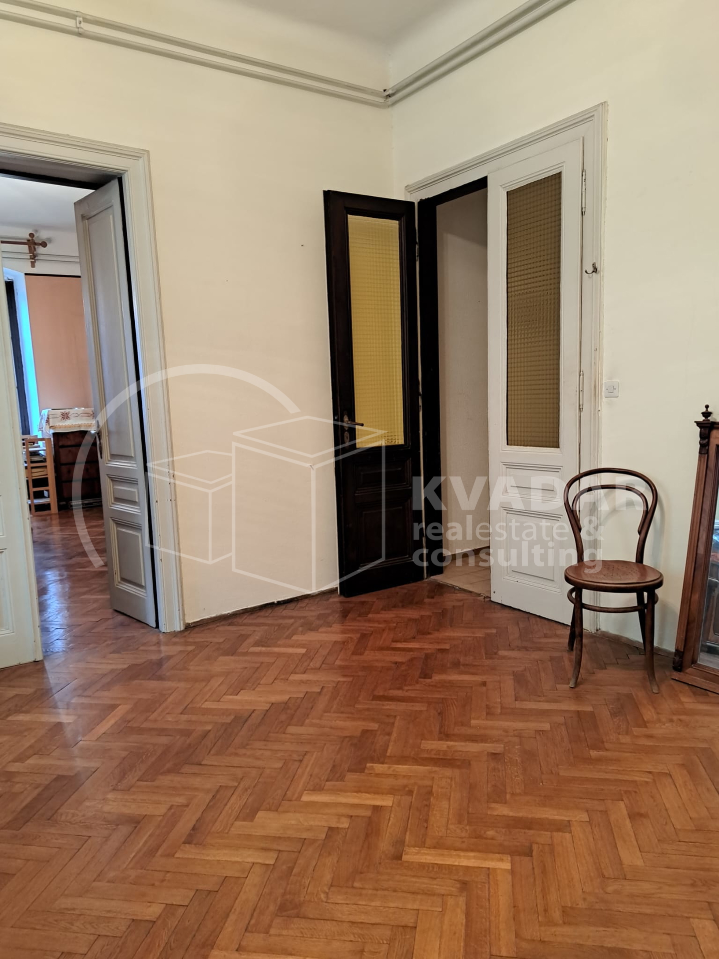 Prostor odlikuju visoki stropovi, skladne proporcije i autentični povijesni detalji, a pažljivo očuvani antikni namještaj, koji po dogovoru može ostati, dodatno naglašava karakter i bezvremensku eleganciju interijera.