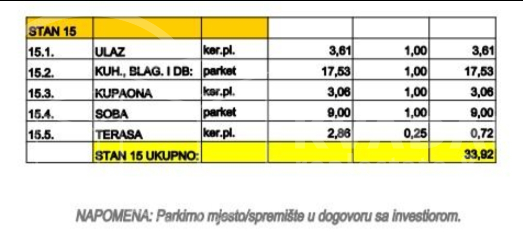 Uz kupnju stana obavezna je kupnja garažnog mjesta po cijeni od: 20.000 €