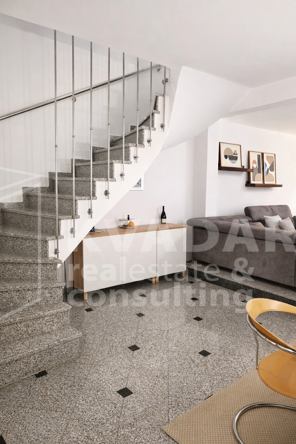 Kuća je funkcionalnog rasporeda koji pruža maksimalnu udobnost, a interijer je izuzetno lijepo i toplo uređen, sa puno prirodnog svjetla. Posebna prednost ove nekretnine je okućnica koja pruža privatnost i mir a na raspolaganju su i 3 parkirna mjesta.