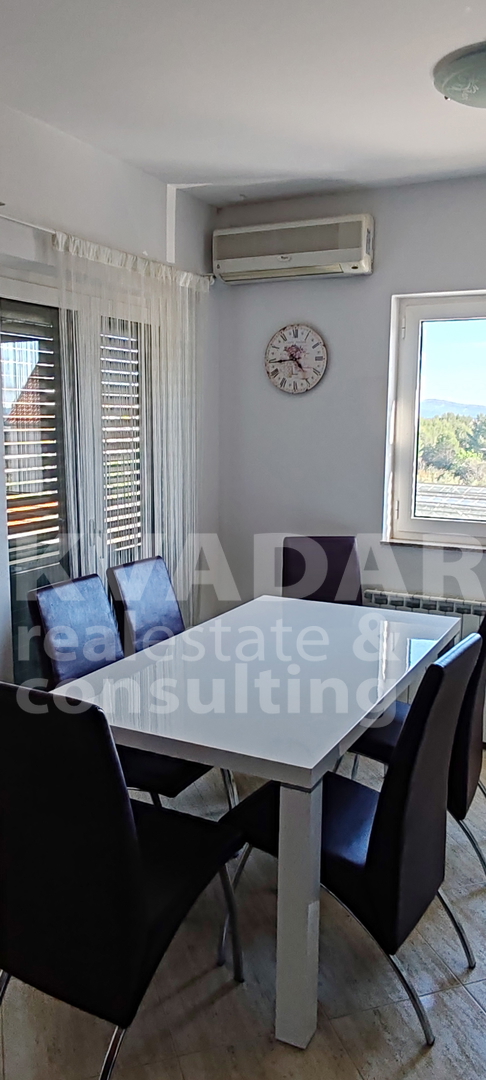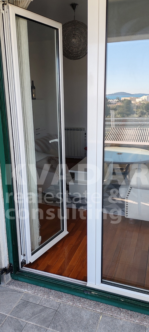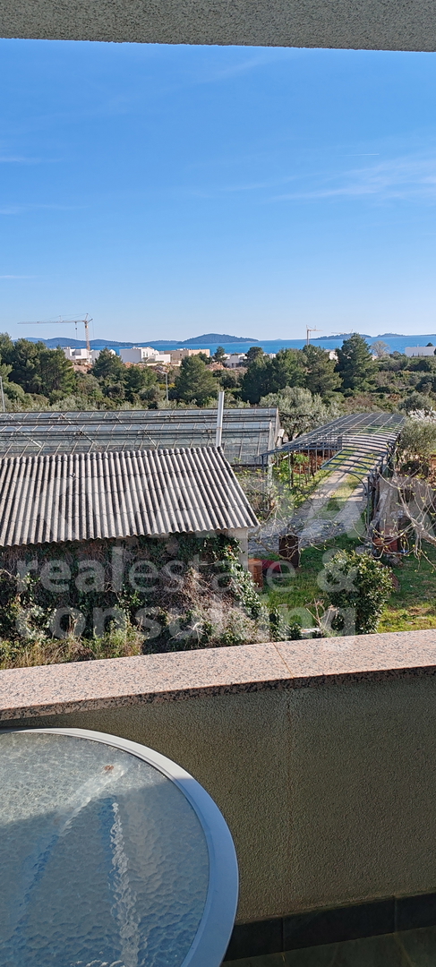 Lijep, osunčan, prostran apartman na mirnoj lokaciji u stambeno tursitičkoj zoni u Podsolarskom pokraj Šibenika i Brodarice. Jednoetažni apartman u zgradi s sa dva kata, nalazi se na prvom katu južne orijentacije. Stan raspolaže s dvije terase, s kojih se pruža pogled na more, otoke šibenskog arhipelaga.