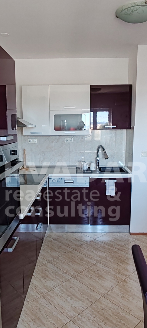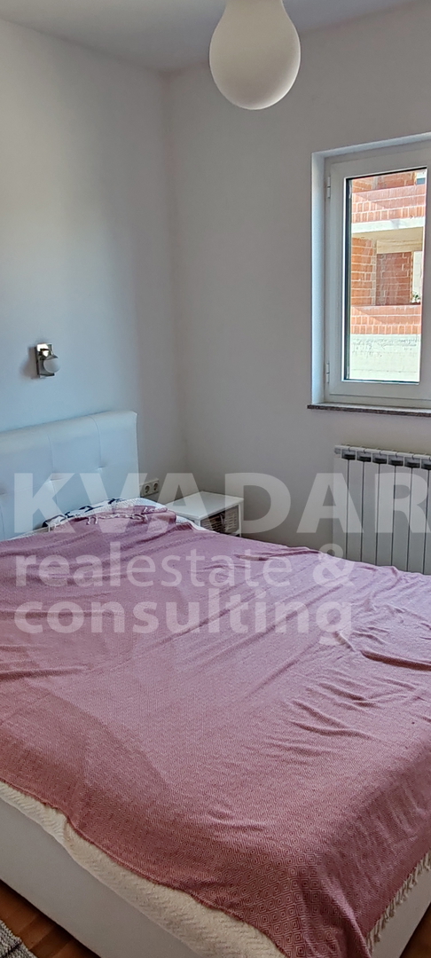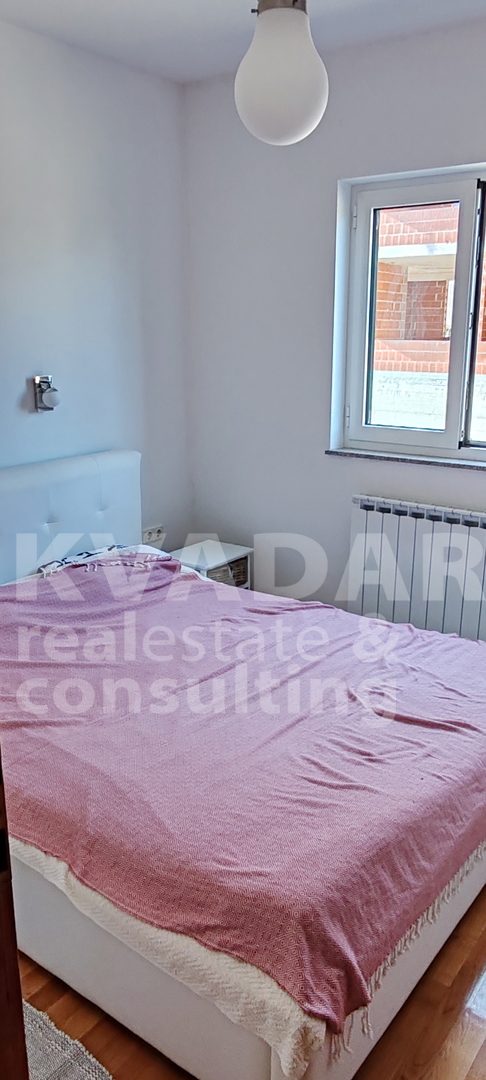 Sastoji se od dvije spavaće sobe, dnevnog boravka, kuhinje, blagavaonice, hodnika, kupaonice, WC-a, dvije terase. Apartmanu pripada jedno parkirno mjesto odmah ispod zgrade.