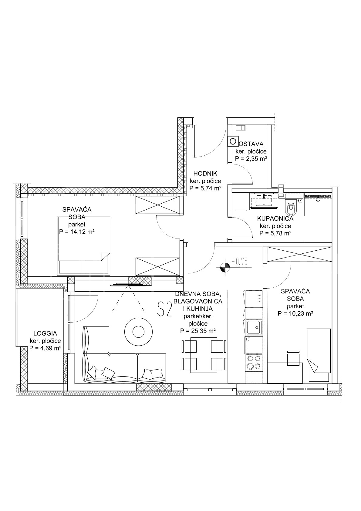 Stan S2 u prizemlju sadrži: